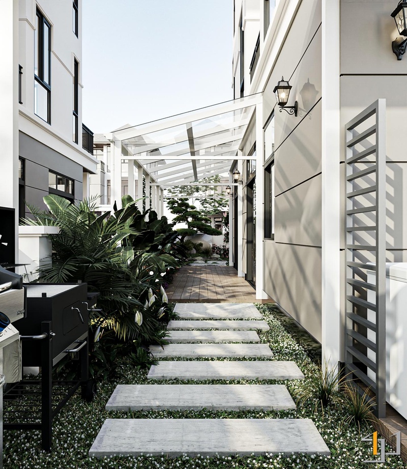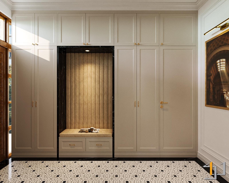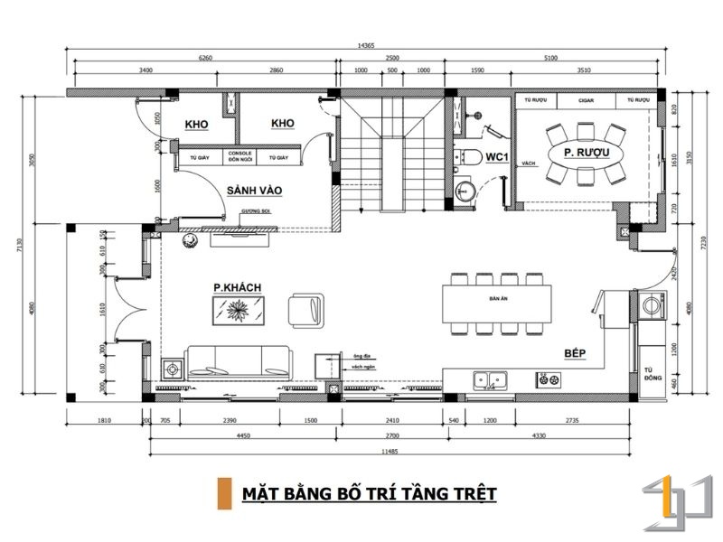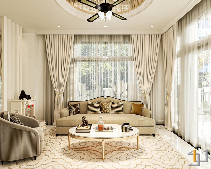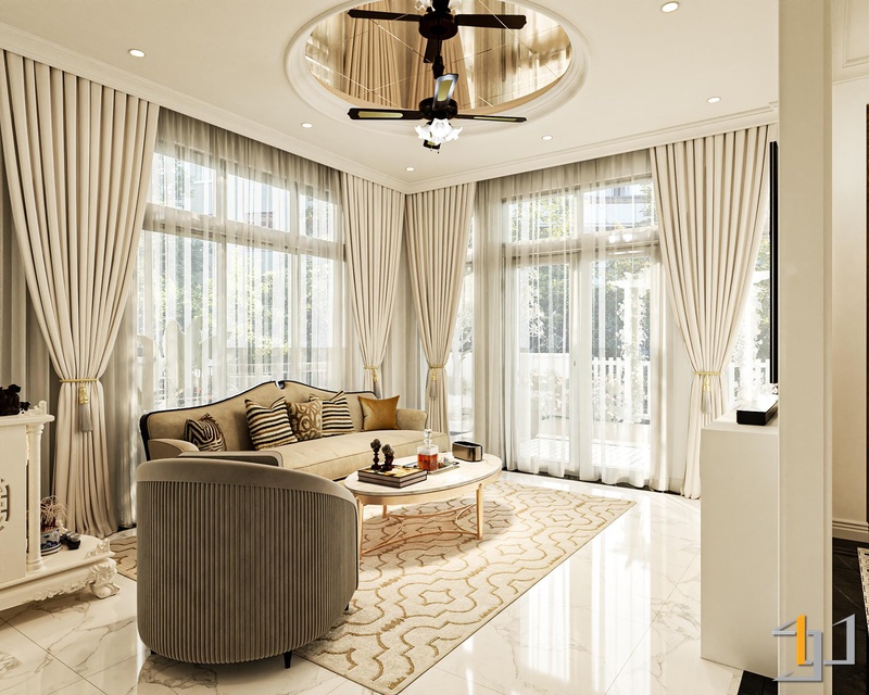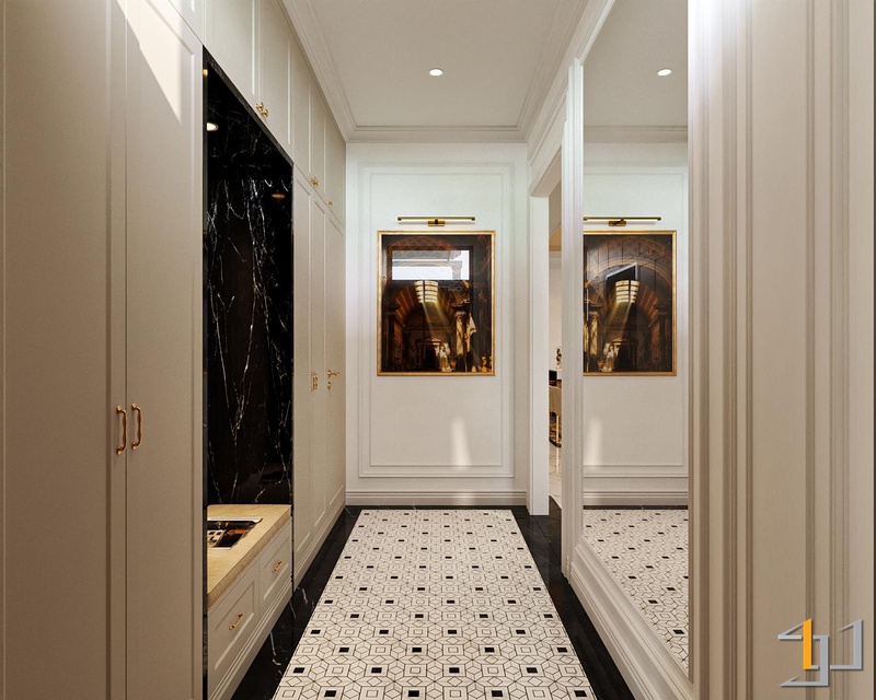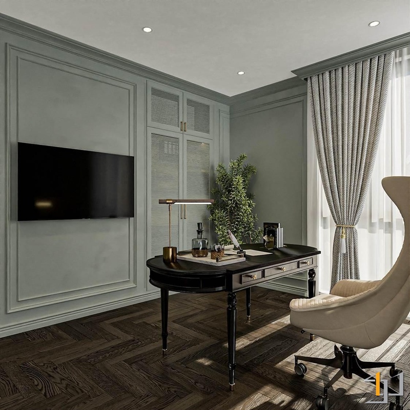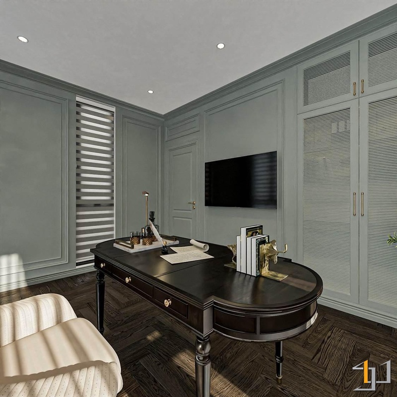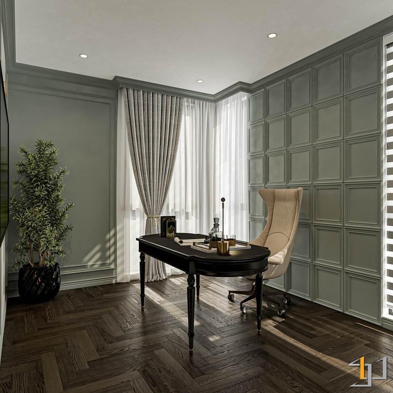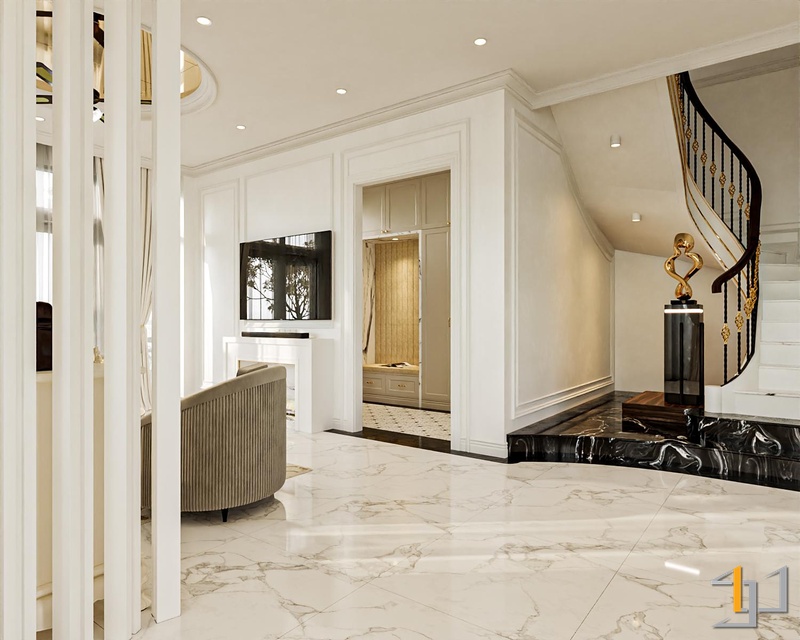 Đây không chỉ là một ngôi nhà để ở, mà là một tuyên ngôn về phong cách sống của một gia chủ thành đạt: Vững chãi, Trật tự nhưng đầy Đam mê và Ấm áp. Phong cách chủ đạo là Hiện đại Sang trọng kết hợp Tân cổ điển tinh tế. Với cảm hứng thiết kế từ ngôn ngữ Kim Tinh Gọn, sự chuẩn xác, sang trọng của kim loại và đá, được làm mềm và tiếp nhiệt bởi các yếu tố Hỏa (ánh sáng ấm, màu da, gỗ tối màu) để cân bằng Bát Tự cho gia chủ mệnh Kim khuyết Hỏa. Tại phòng rượu, tông màu đen huyền bí kết hợp ánh sáng led hắt màu hổ phách, ghế da nâu, tường ốp da quả trám là nơi năng lượng mạnh mẽ nhất, thể hiện quyền uy của gia chủ.