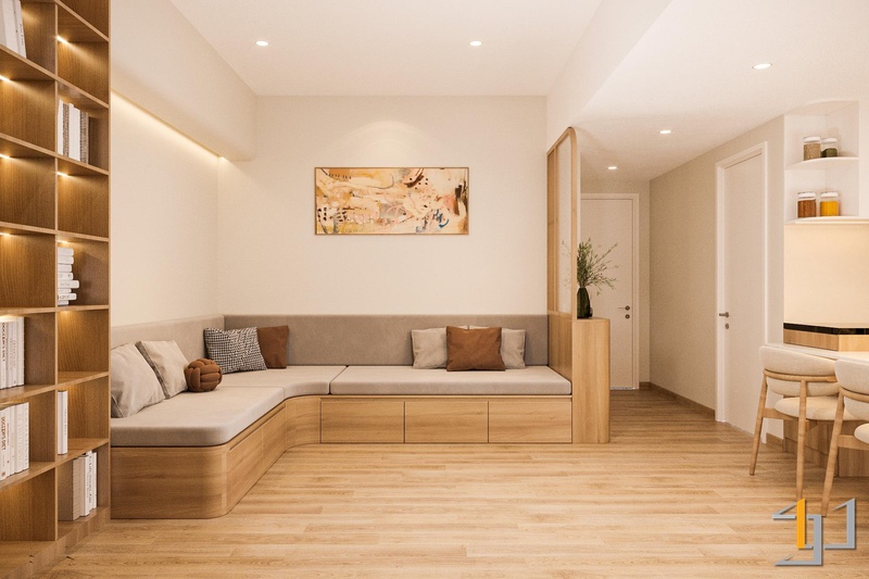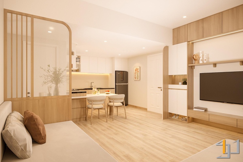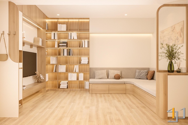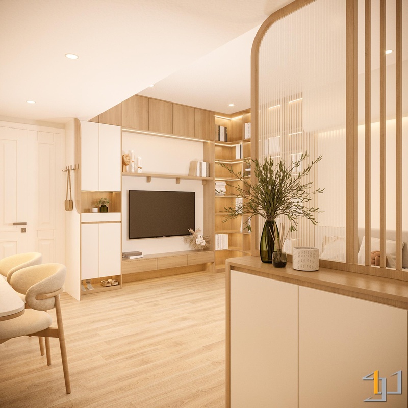 Căn hộ được định hình với Thổ làm nền năng lượng chính, giữ cảm giác ấm, ổn định và dễ chịu ngay từ lối vào. Bảng màu be – nâu – gỗ sáng được xử lý xuyên suốt, tạo sự liên kết mềm giữa các khu vực và giữ cho không gian luôn nhẹ nhưng có chiều sâu.