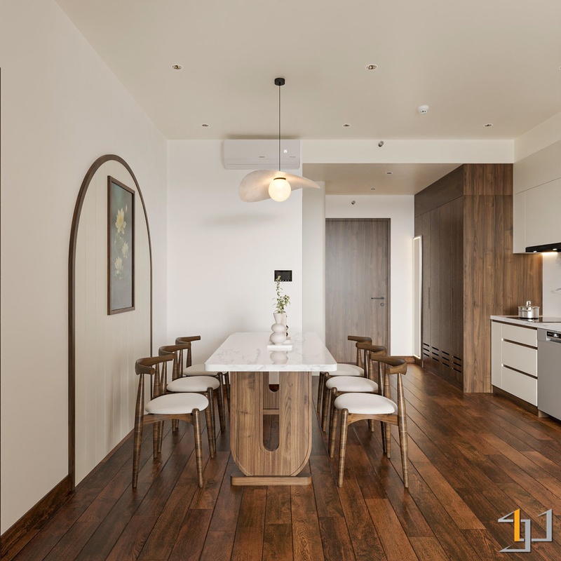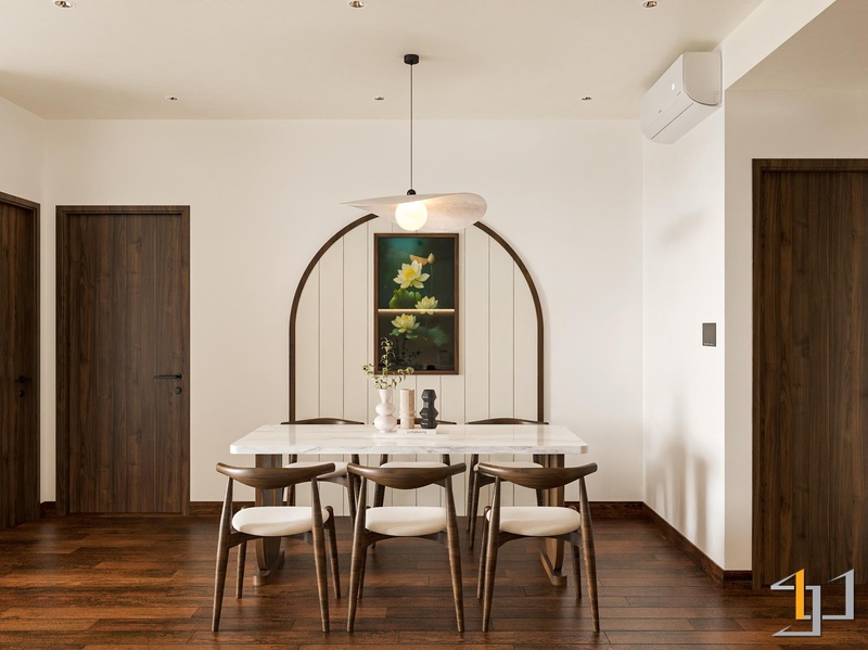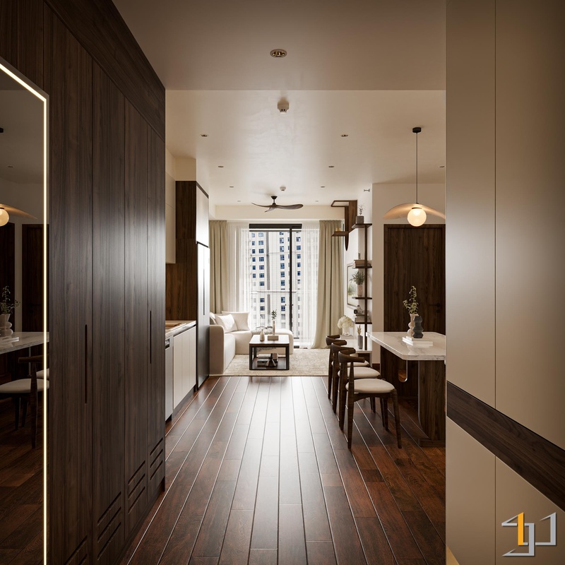 Tinh thần Japandi được điều chỉnh theo nhu cầu sống thực tế: ưu tiên gọn gàng, ánh sáng dịu, bố cục rõ ràng để không gian luôn nhẹ và dễ nghỉ ngơi. Không chạy theo xu hướng ngắn hạn, thiết kế tập trung vào cảm giác sử dụng mỗi ngày. Một phiên bản Japandi không nhằm gây ấn tượng tức thì, mà được xây dựng để sống chậm, sống bền và sống lâu trong chính căn hộ của mình.