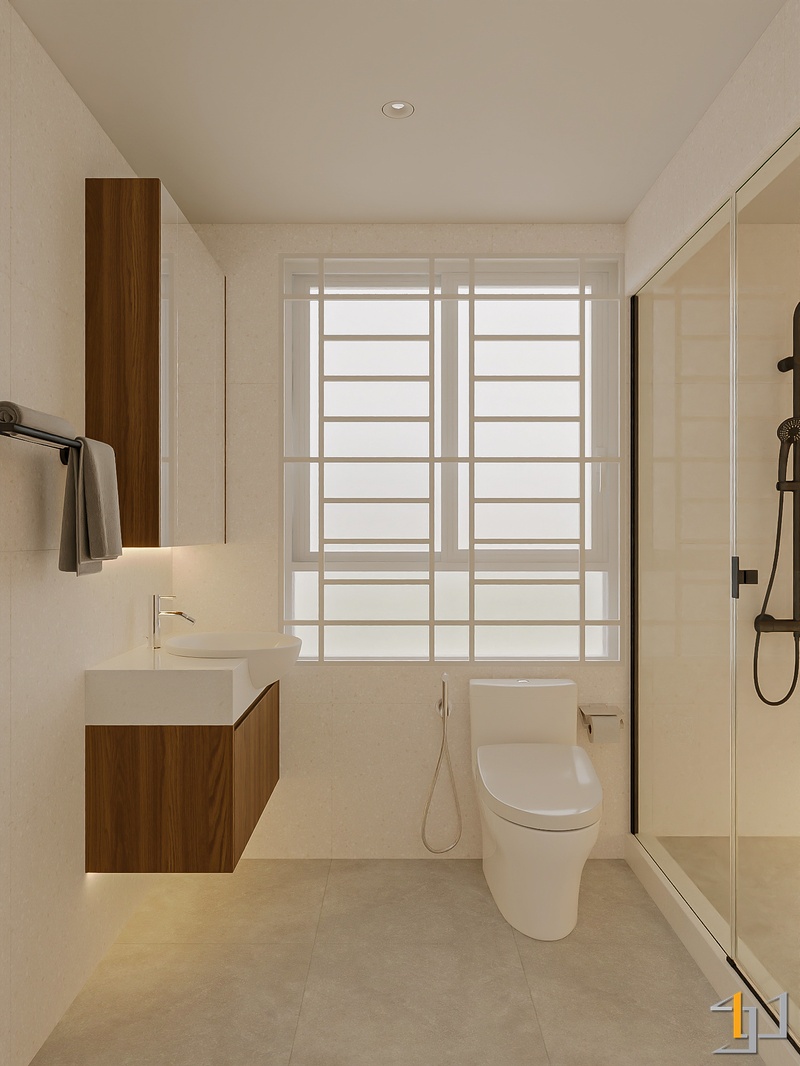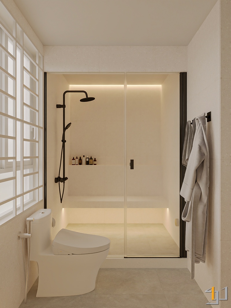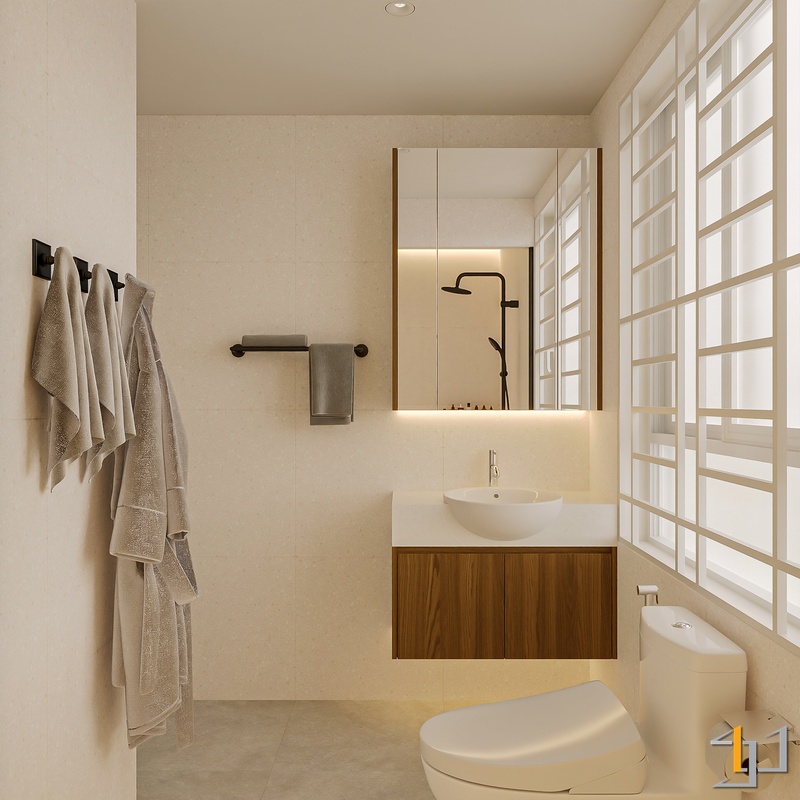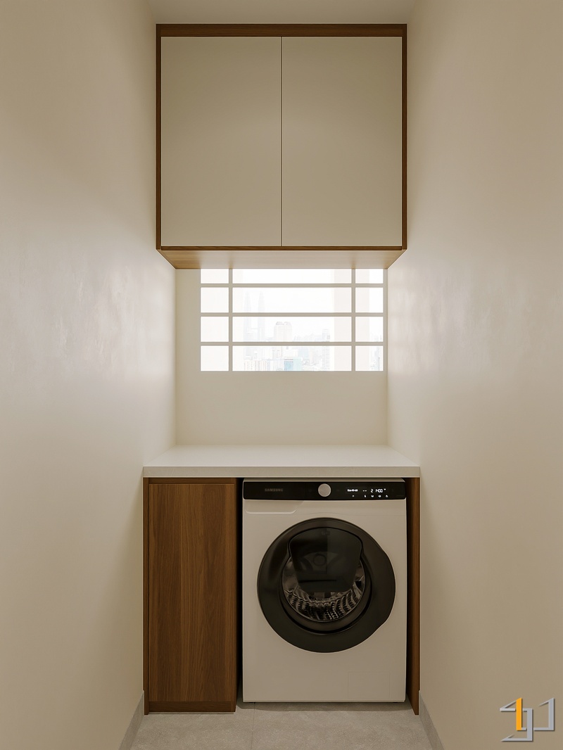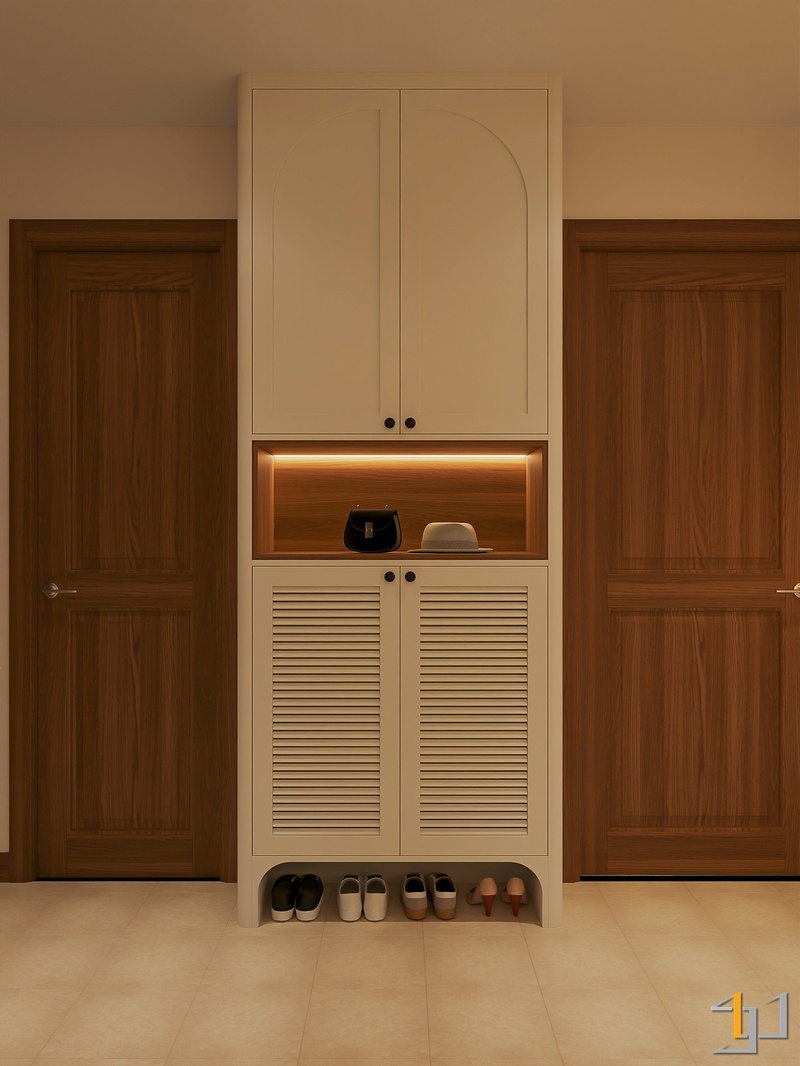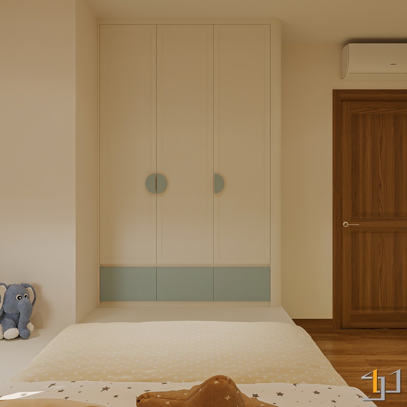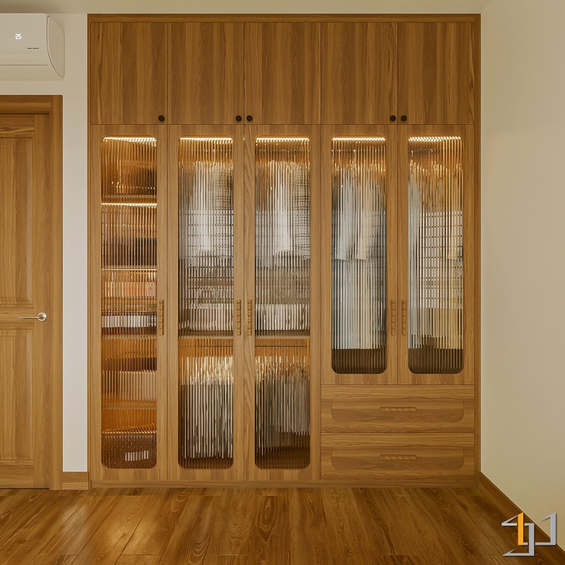 Ngôn ngữ thiết kế hướng đến Modern Minimal – Japandi – Scandinavian, vì vậy nội thất được tiết chế, tập trung vào công năng và cảm giác sống lâu dài. Hệ tủ kịch trần, giường bục kết hợp lưu trữ và các mảng nan gỗ trang trí giúp không gian gọn gàng nhưng vẫn có chiều sâu.