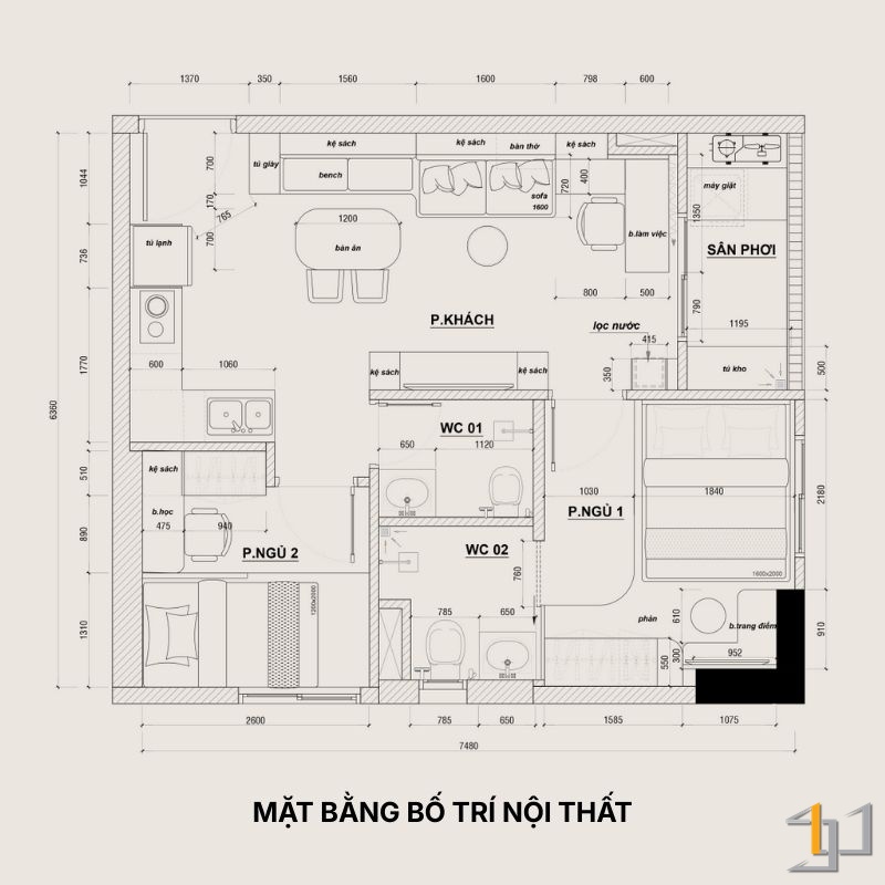 Phong cách Hiện đại trong căn hộ Sen Hồng không dừng lại ở sự tiện nghi mà là một hành trình chuyển tiếp cảm xúc đầy tinh tế giữa sự ấm áp và nét sắc sảo. Trên nền gam màu Be nhã nhặn và nội thất gỗ chạy dọc chân tường tạo cảm giác bao bọc của Thổ, những hệ tủ cánh kính vuông vức hiện diện như một điểm nhấn của trật tự và tư duy mạch lạc của Kim.