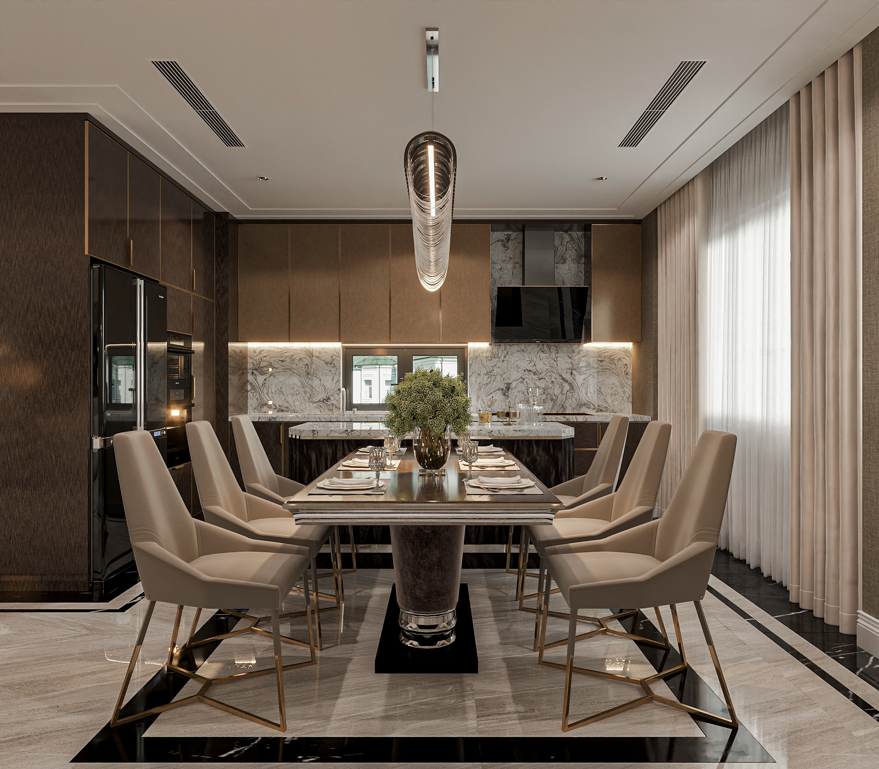 Gia chủ yêu thích sự sang trọng của Tân Cổ Điển nhưng lại e ngại những chi tiết uốn lượn cầu kỳ. Đây là một đề bài thú vị, đòi hỏi sự chắt lọc và sáng tạo.