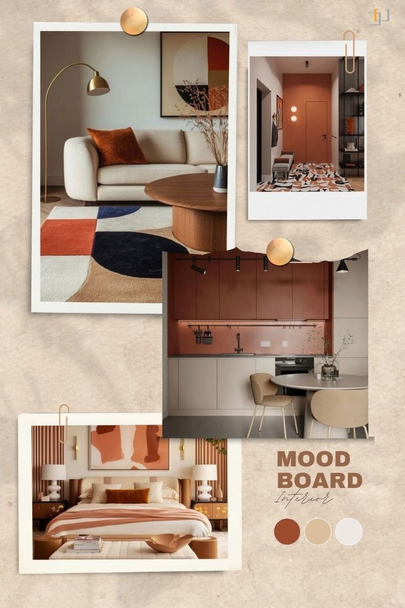 - Bảng màu “Nồng Ấm” & Quyền lực: Nền không gian thường là các gam màu trung tính, sang trọng như Nâu đậm hoặc Đen. Trên đó, những điểm nhấn màu nóng có chiều sâu như Đỏ rượu, Cam đất hay Vàng nghệ được đưa vào một cách mạnh mẽ nhưng có kiểm soát, tạo ra sự kịch tính thị giác đầy tinh tế.