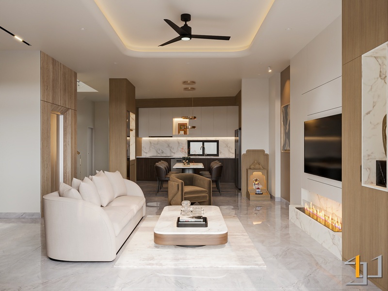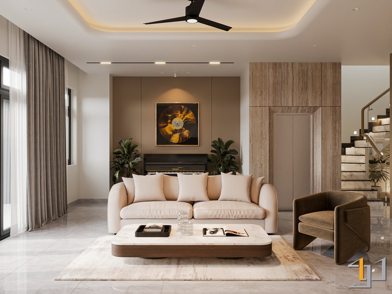 Không gian nhà phố được phát triển theo tinh thần hiện đại, nơi sự gọn gàng trong bố cục và tính kỷ luật trong đường nét được đặt làm trọng tâm. Từ cách tổ chức mặt bằng đến lựa chọn vật liệu đều hướng đến sự rõ ràng, tinh giản – đúng tinh thần Kim Tinh Gọn trong thiết kế.