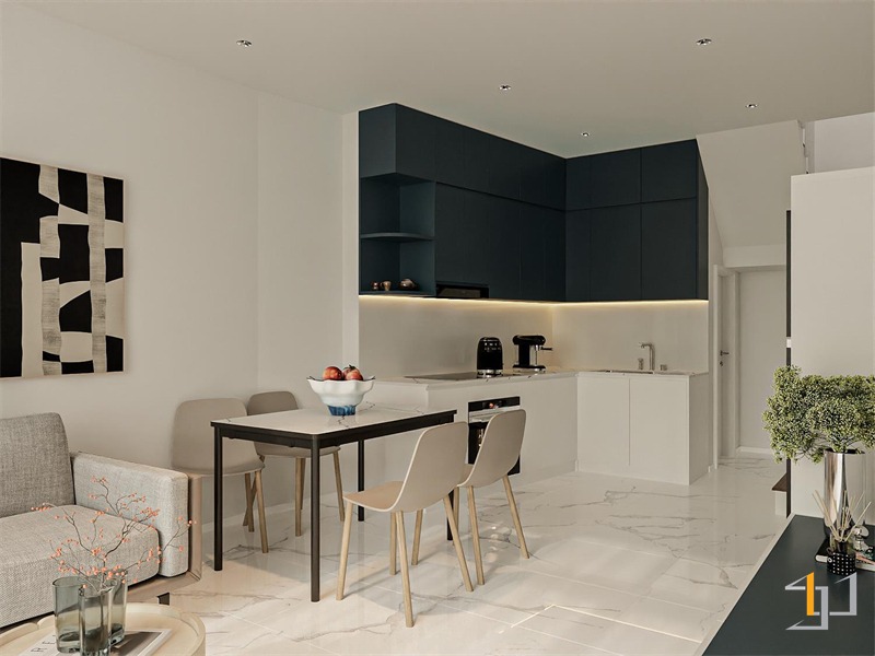 – Mặt đá bếp: Đá trắng sứ vân mây
