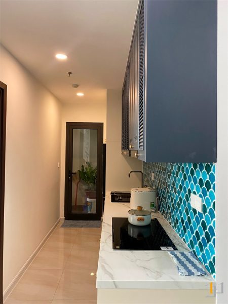 – Mặt đá bếp: Đá trắng sứ vân mây