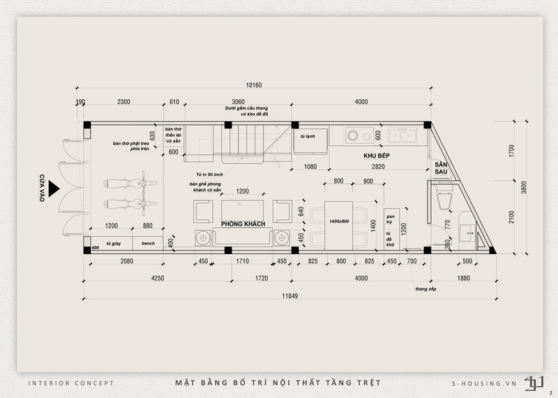 Thiết kế đề cao sự tối giản chức năng trong đường nét và hình khối dứt khoát, hạn chế các chi tiết trang trí rườm rà. Tổng thể căn nhà là sự kết hợp hài hòa giữa các gam màu trung tính, trầm ấm (be, nâu đất, xám) với vật liệu khối thô mộc (đá, bê tông, gỗ sẫm) và ánh sáng được bố trí làm nổi bật chiều sâu cấu trúc, tạo nên không gian sống ổn định và chuẩn mực.