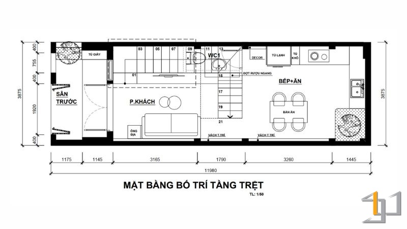 Tại ngôi nhà phố 2 tầng này, phong cách Hiện đại được nhiệt đới hóa để trở nên dịu mát và gần gũi hơn nhờ ngôn ngữ Mộc Sinh Khí. Giải pháp thiết kế tập trung vào việc sử dụng gỗ sáng màu làm chủ đạo, từ hệ tủ bếp, bàn ăn cho đến vách ốp tường, tạo nên một phông nền thị giác nhẹ nhàng, sạch sẽ và đầy năng lượng tích cực. Điểm đắt giá nhất chính là cách các kiến trúc sư kích hoạt sinh khí cho ngôi nhà bằng những mảng màu Xanh bạc hà và Xanh Sage dịu mắt. Sự xuất hiện của gạch thẻ ốp tường bếp hay mảng sơn nhấn tại phòng khách không chỉ tạo điểm nhìn thú vị mà còn mang lại cảm giác thư thái như đang ở giữa thiên nhiên.