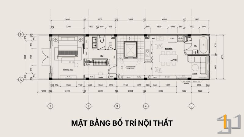 Tại ngôi nhà phố này, sự kết hợp táo bạo giữa vẻ đẹp thô mộc của Wabi Sabi và sự chuẩn mực của Tân Cổ Điển được dung hòa nhờ ngôn ngữ Thổ Vững Chãi. Không gian được bao phủ bởi gam màu Be và hiệu ứng sơn giả bê tông ấm áp, tạo nên một lớp nền cảm xúc an toàn, bao bọc lấy các thành viên gia đình. Để không gian không bị nặng nề bởi các đường phào chỉ cổ điển, những đường cong uốn lượn tự do trên trần thạch cao và hệ đèn thả hình dáng đám mây trôi lơ lửng đóng vai trò khơi thông dòng chảy thị giác.