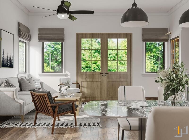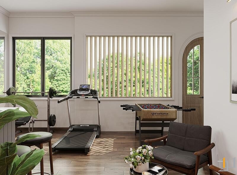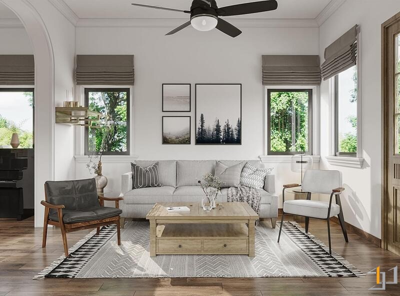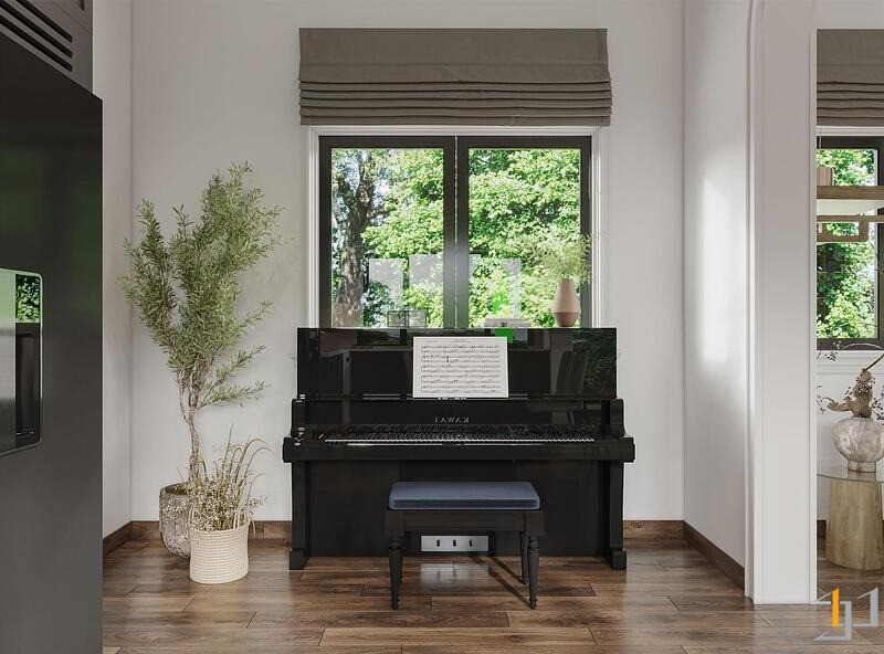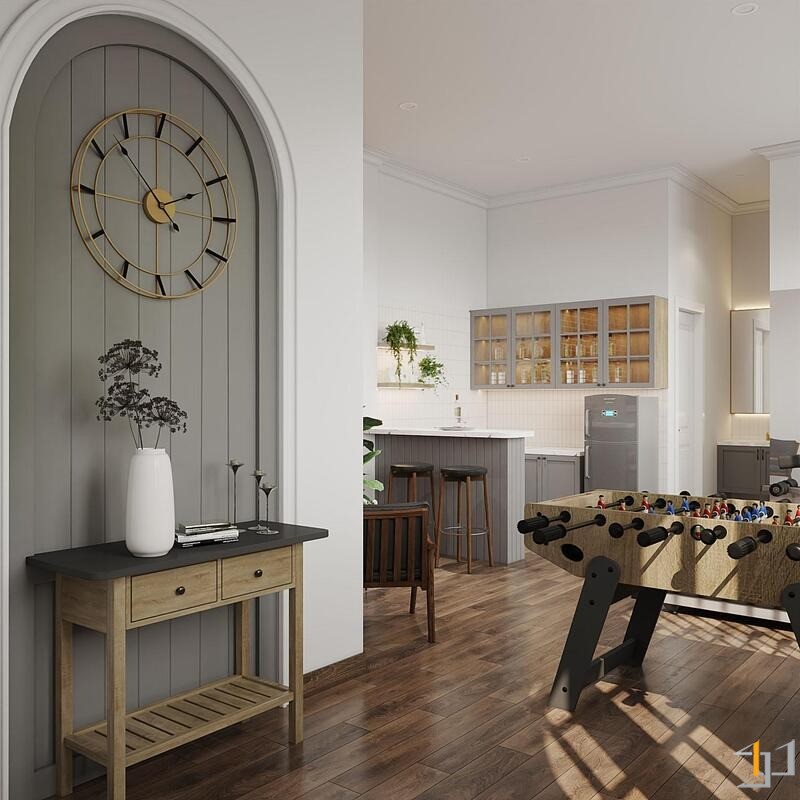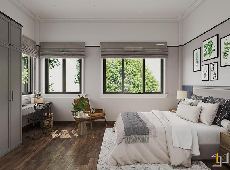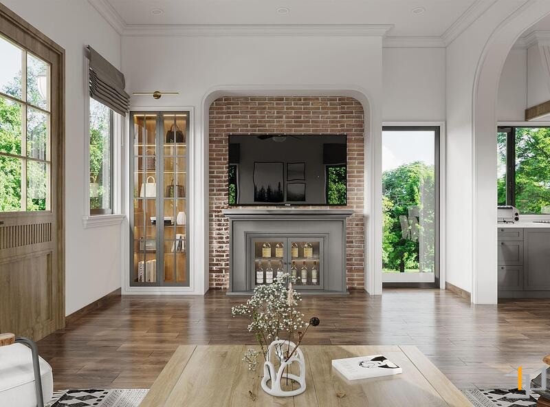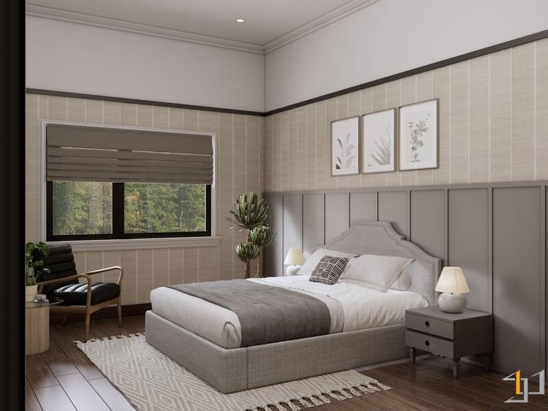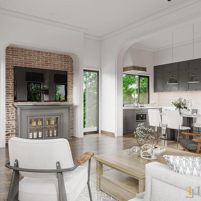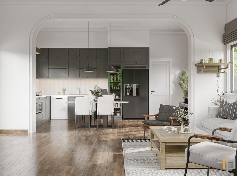 Nội thất nhà phố sân vườn Bình Dương 2 Tầng mang tinh thần hiện đại, tinh gọn và gần gũi với thiên nhiên. Không gian được định hình bởi gam màu trung tính – trắng, xám và nâu gỗ – tạo nên tổng thể hài hòa, ấm áp. Ánh sáng tự nhiên được khai thác tối đa qua hệ cửa kính lớn, giúp căn nhà luôn tràn đầy sinh khí. Khu vực phòng khách, bếp và bàn ăn được kết nối liền mạch, mang đến cảm giác thông thoáng và gắn kết giữa các thành viên. Từng chi tiết trang trí được tiết chế, tập trung vào chất liệu và đường nét để tôn lên vẻ tinh tế. Phòng ngủ nhẹ nhàng với màu be – gỗ sáng, tạo không gian thư giãn sau ngày dài. Toàn bộ thiết kế hướng đến sự cân bằng giữa công năng và cảm xúc, mang đến một ngôi nhà vừa tiện nghi, vừa chan hòa cùng thiên nhiên.
