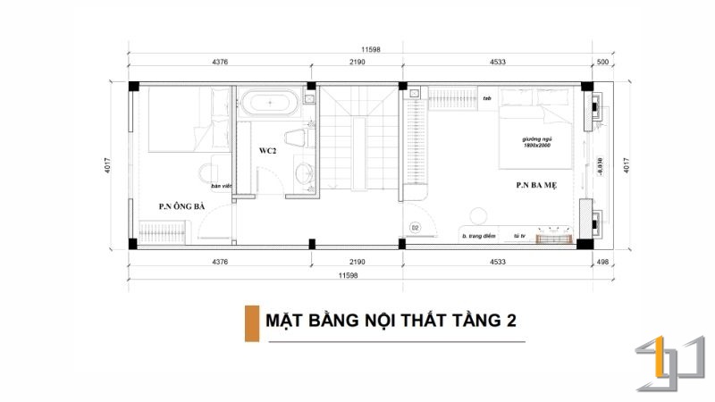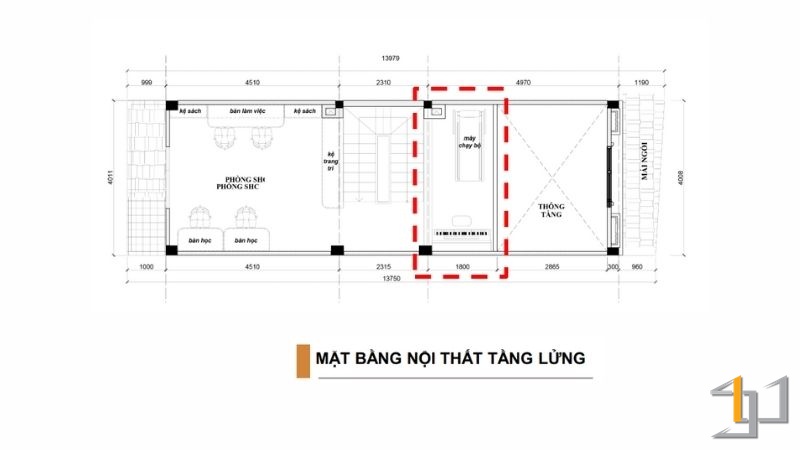 Điểm đắt giá nhất của thiết kế nằm ở giải pháp kiến trúc mở rộng Trung Cung (Tâm nhà) thông qua việc bố trí tầng lửng và khoảng thông tầng thoáng đạt. Việc giải phóng trung cung giúp dòng khí luân chuyển tự do theo trục thẳng đứng, xóa bỏ sự tù túng của nhà ống và kích hoạt nguồn năng lượng tích cực cho toàn bộ ngôi nhà.