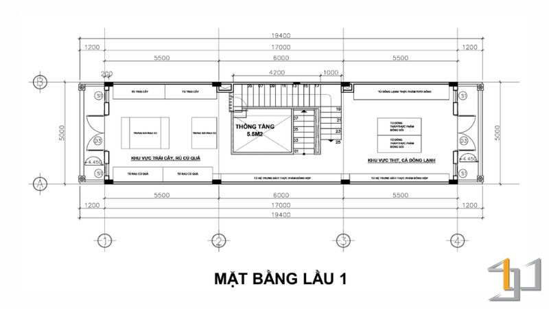 Thiết kế nội thất shop trái cây FiveStar ứng dụng phong cách Industrial (Công nghiệp) mang đường nét dứt khoát và bảng màu trung tính. Các khu vực trưng bày bên trong được phân bổ khoa học, có biển hiệu ghi rõ loại thực phẩm trên mỗi tủ kệ giúp khách hàng nhanh chóng tìm được sản phẩm họ cần khi mua sắm tại shop. Căn shophouse có cấu trúc 1 trệt 2 lầu, với 2 tầng phía dưới dùng cho việc kinh doanh và tầng 2 trên cùng dùng để thiết kế văn phòng riêng tư và yên tĩnh. Không gian văn phòng chú trọng việc tạo lập môi trường làm việc thoải mái và hiệu quả. Sử dụng cửa sổ lớn để tận dụng ánh sáng tự nhiên và cây xanh trang trí để tạo bầu không khí dễ chịu.