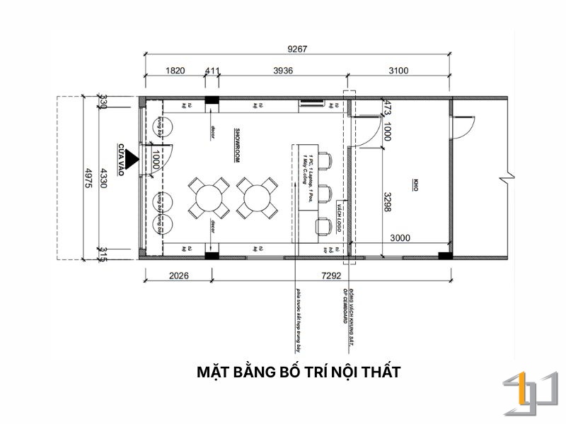 Phong cách Industrial kết hợp cùng gam màu đen chủ đạo tạo ra sự ấn tượng và mạnh mẽ cho tiệm sửa xe Tân Phú. Điểm đặc biệt trong thiết kế là các họa tiết hình lục giác xuất hiện xuyên suốt trong không gian, từ hoa văn nội thất cho đến kiểu dáng của đèn LED trần. Các vật dụng được bố trí hợp lý và gói gọn trong một không gian chỉ 48m2. Sử dụng toàn bộ cửa kính tại mặt tiền để tận dụng ánh sáng tự nhiên, giúp cân bằng lại tông màu tối chủ đạo và tạo cảm giác rộng rãi hơn cho cửa tiệm. Khu vực lễ tân được thiết kế gọn gàng, đơn giản, có logo thương hiệu nổi bật phía sau. Tủ kệ kịch trần được đặt sát tường tạo lối đi thông thoáng, kích thước lớn giúp trưng bày được nhiều sản phẩm.