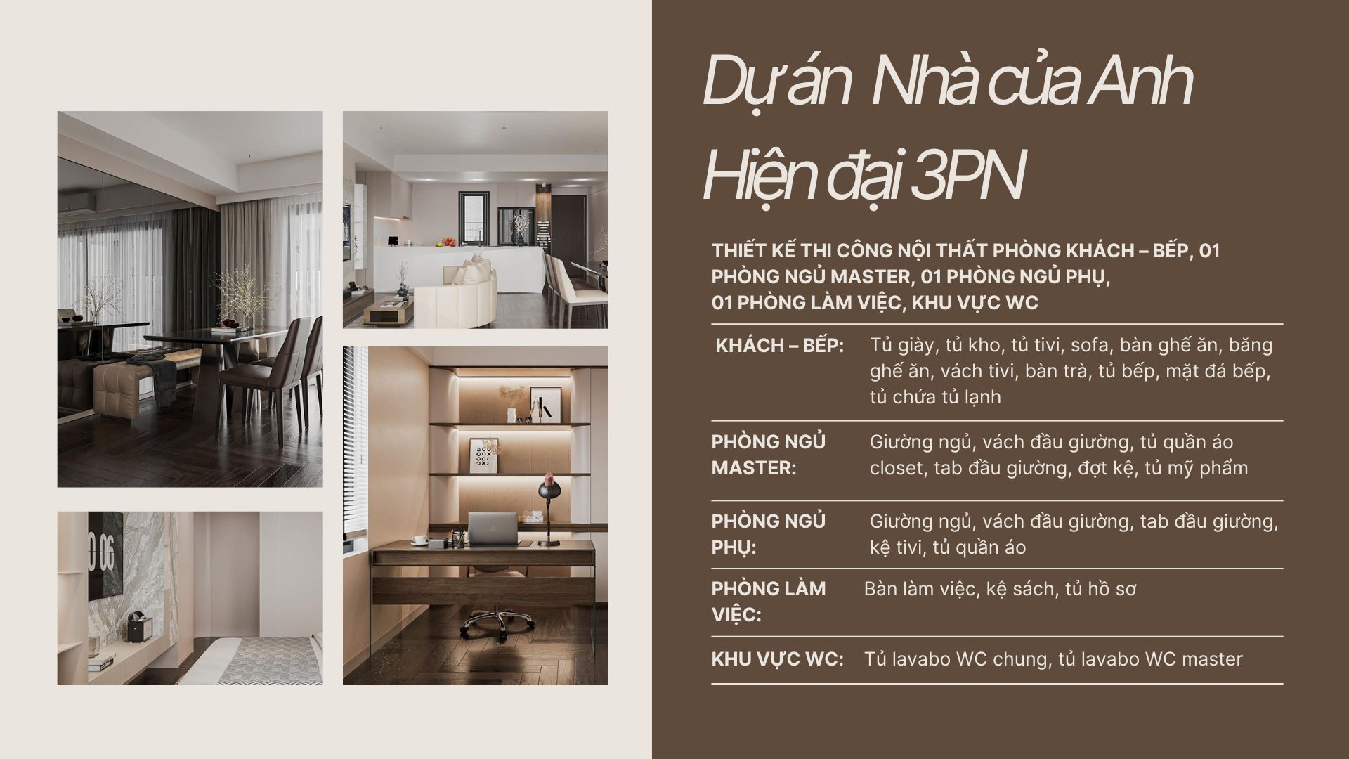 Gia công nội thất tại xưởng theo tiêu chuẩn kỹ thuật và lắp đặt hoàn thiện tại công trình.